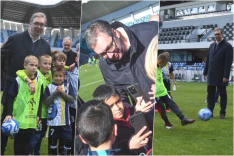 Vučić je ranije danas obišao novoizgrađeni stadion "Kraljevica" u Zaječaru, gde se fotografisao sa najmlađima.