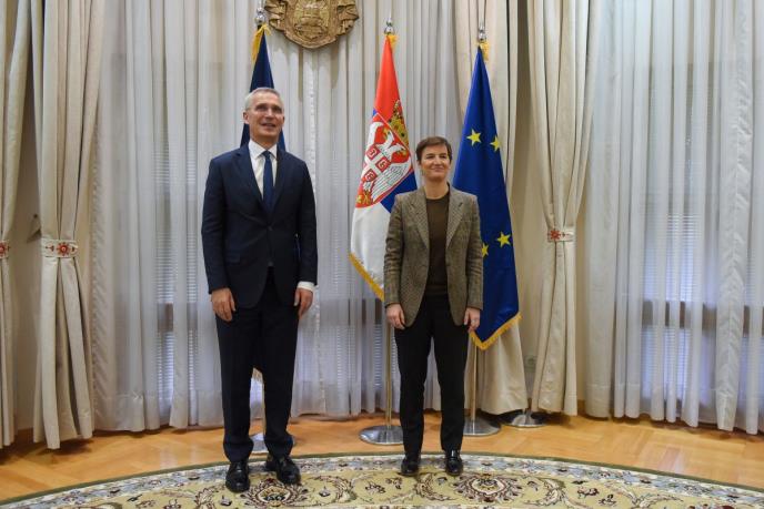 Premijerka SrbijeAna Brnabić razgovarala je sa generalnim sekretarom NATO-a Jensom Stoltenbergom o saradnji sa NATO-om, osiguranju bezbednosti i sigurnosti za srpski narod na Kosovu i Metohiji, kao i nastavku realizacije zajedničkih projekata, prenosi RTS.