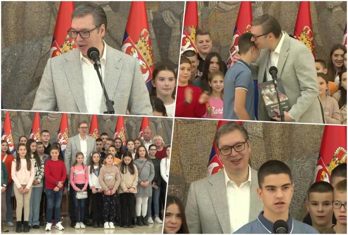 Predsednik Srbije Aleksandar Vučić primio je danas učenike i nastavnike OŠ "Sveti Sava" iz Žerovnice sa Kosova i Metohije.