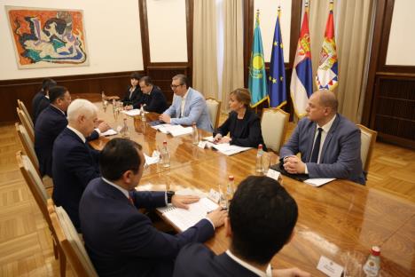 Predsednik Srbije Aleksandar Vučić sastao se danas sa ministrom spoljnih poslova Kazahstana Muratom Nurtleom.
