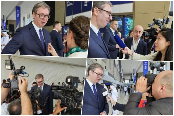 VELIKO INTERESOVANJE STRANIH MEDIJA ZA VUČIĆA U DUBAIJU: Svi žele izjavu predsednika Srbije (FOTO)