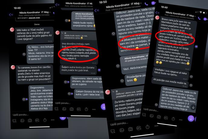 Naime, u javnost je dospela prepiska simpatizera pojedinih opozicionih lidera u kojoj nedvosmisleno dogovaraju jačanje napada na vlast i predsednika Srbije na društvenim mrežama uoči izbora. "Udarite najniže po njemu, pišite da je lopov, izdajnik, ološ, je*ite mu i brata, samo nemojte decu. Šaljem sutra lovicu po Goranu mom", "Rekao sam im da izmišljaju, šta im prvo padne na pamet, ko je*e sendvičare", piše izvesni Nikola u jednoj Vajber grupi, upisan kao koordinator za Novi Beograd.