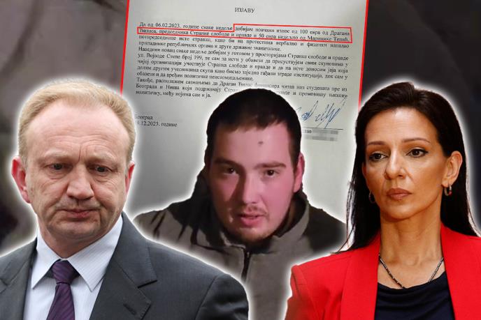 - Od 6. februara ove godine svake nedelje dobijam novčani iznos od 100 evra od Dragana Đilasa, predsednika Stranke slobode i pravde i 50 evra nedeljno od Marinike Tepić, potpredsednice SSP kako bih na protestima verbalno i fizički napadao pripadnike republičkih organa i druge državne zvaničnike. Navedeni novac svake nedelje dobijam u gotovom u prostorijama Stranke slobode i pravde u ulici Vojvode Stepe 199, a za isti sam u obavezi da prisustvujem svim skupovima u čijoj organizaciji učestvuje SSP i da donosim jaja koja delim drugim učesnicima skupa kako bismo zajedno gađali zgrade institucija, a u obavezi sam da vređam političke neistomišljenike - naveo je Milojević u izjavi policiji.