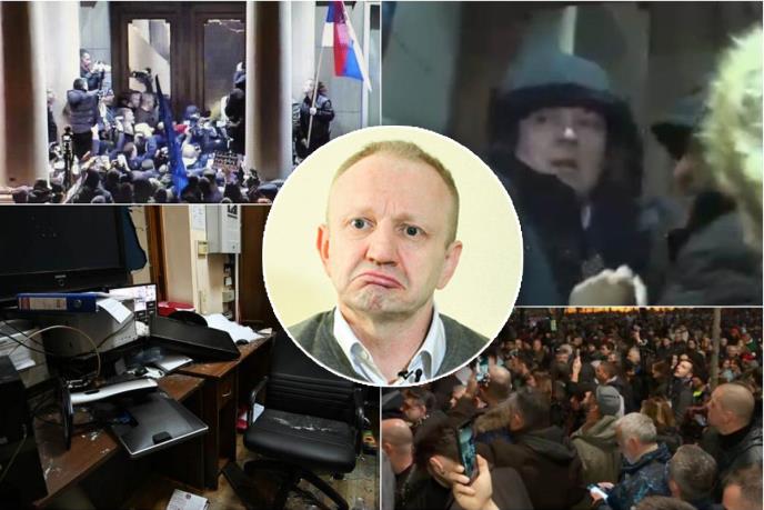 Podsetimo, na snimku se vidi Zelenović kako navodi masu da razvale vrata ovog zdanja, a u jednom momentu se čulo "Daj sad dinamit".