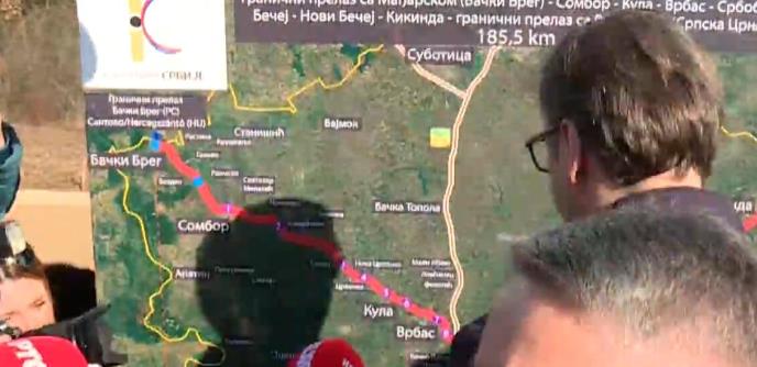 Predsednik Republike Srbije Aleksandar Vučić izjavio je danas tokom obilaska radova na izgradnji brze saobraćajnice "Osmeh Vojvodine", od Bačkog Brega do Srpske Crnje u dužini od 185,5 kilometara, da će veliki broj mesta na toj trasi biti na mapi najboljih puteva u Srbiji.