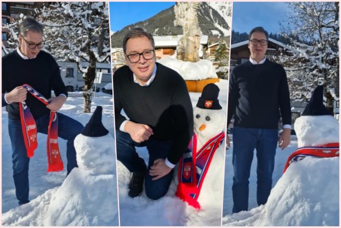 "Ovo će da bude najlepši Sneško, u Klostersu, u Davosu, sa šalom i kapom Srbije. I ja mislim da mi je ovo treći Sneško u životu koji sam ili zajedno ili za Vukana pravio. Ovo je najlepši i najbolji Sneško u Švajcarskoj i taman za naše sportiste da osvoje najviše medalja i na Olimpijadama i u fudbalu na predstojećem Evropskom prvenstvu", rekao je predsednik Vučić u video snimku koji je objavio na Tiktoku.