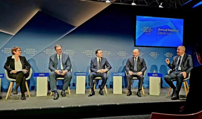 Vučić je prvi najavljen da govori u diskusiji, kao predsednik zemlje koja ima prosperitetnu i najveću ekonomiju na Zapadnom Balkanu.