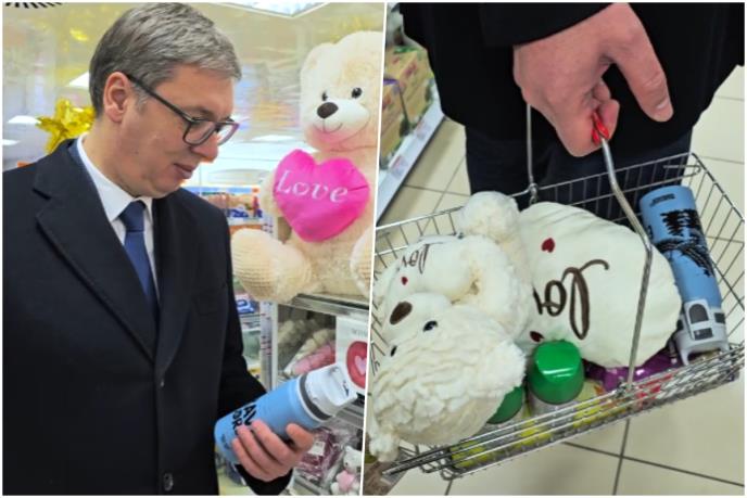 Naime, Vučić je na svom TikTok nalogu objavio snimak iz jedne lokalne prodavnice u kojoj je kupio poklon svojoj deci.