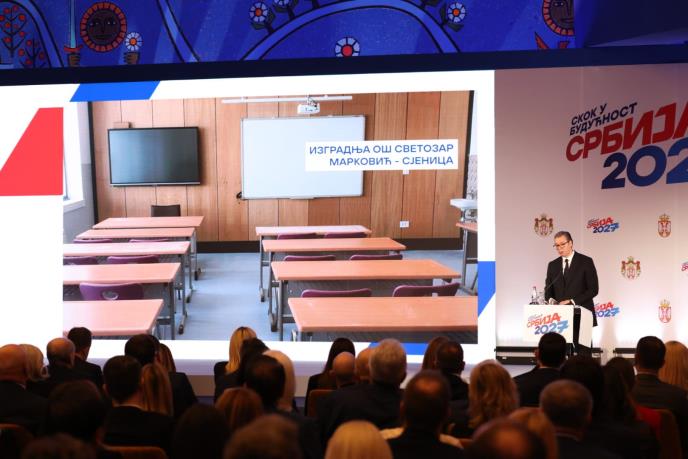 Predsednik Srbije Aleksandar Vučić rekao je večeras tokom predstavljanja plana "Srbija 2027" da će ove godine krenuti izgradnja novih 23 vrtića, i 67 škola širom Srbije.
