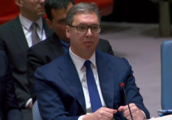 - Zahvaljujem se 109 zemalja unutar Ujedinjenih nacija koje nisu priznale nezavisnost Kosova. Želim da se zahvalim tim narodima u svetu koji se drže Povelje i rezolucije 1244. I takođe želim da kažem, jer je ovde pomenuto da je Srbija produžena ruka Rusije. Kao ponosni predsednik Srbije, govorim svima vama i kao što možete da vidite, lako mi je da vas pogledam u oči i da kažem da je Srbija nezavisna, suverena, slobodarska zemlja. Mi nismo ničije marionete. Ni Sjedinjenih Američkih Država, Rusije ili bilo koje druge zemlje u svetu. I tako će i ostati. Zato sam toliko ponosan što sam video našu prelepu zastavu koja se vijori pred ovom zgradom Ujedinjenih nacija. Hvala vam još jednom što ste me saslušali i što ste mi dali priliku da vam se obratim. Hvala vam mnogo.
