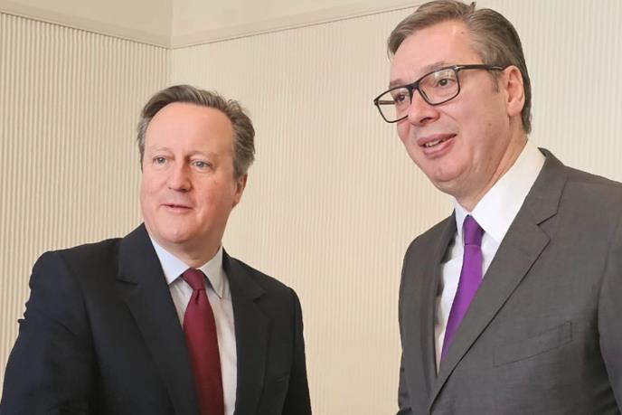 "Dobar i veoma koristan razgovor sa Lordom Dejvidom Kameronom. Govoreći o planovima Srbije za rast u narednim godinama, kao i o organizaciji sajma EXPO2027, posebno sam naglasio značaj ekonomske saradnje, investicija i trgovinskih odnosa između naše zemlje i Ujedinjenog Kraljevstva. Razmenili smo mišljenja o svim važnim aktuelnim izazovima spoljne i bezbednosne politike, kao i o situaciji u regionu Zapadnog Balkana", napisao je redsednik na Instagramu posle sastanka.