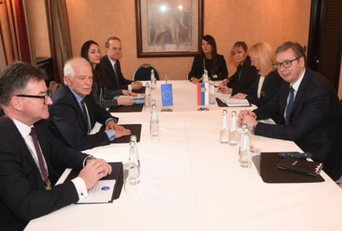 Predsednik Srbije Aleksandar Vučić sastao se sa visokim predstavnikom EU za spoljne poslove i bezbednosnu politiku i potpredsednikom Evropske komisije Žozepom Boreljom i specijalnim predstavnikom EU za dijalog Beograda i Prištine i druga regionalna pitanja Zapadnog Balkana Miroslavom Lajčakom.