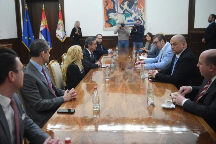 BEOGRAD - Predsednik Republike Srbije Aleksandar Vučić sastao se s predstavnicima Američko-jevrejskog komiteta za javne poslove u zgradi Generalnog sekretarijata predsednika Republike na Andrićevom vencu.
