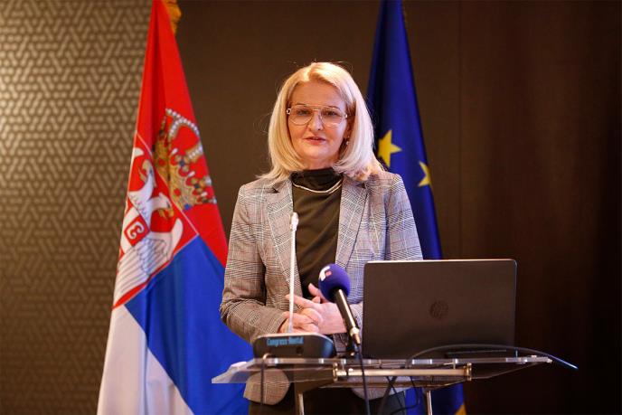- Hajde da pričamo o dijalogu sa Prištinom. Ne sa Kosovom nego sa Prištinom. Ovo je zvanični naziv dijaloga - rekla je ona na panelu "Proširenje EU i Zapadni Balkan: Da li Srbija može postići cilj do 2030. godine?", na kome su učestvovali i šef Delegacije EU Emanuel Žiofre i ambasador SAD Kristofer Hil.