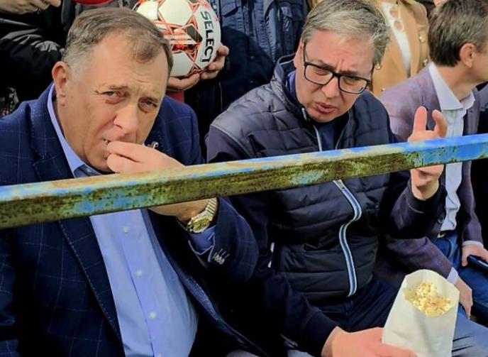 Predsednik Srbije Aleksandar Vučić na svom Instagram nalogu objavio je fotografiju na kojoj u društvu Milorada Dodika prati utakmicu lokalnog fudbalskog tima iz Pambukovice.