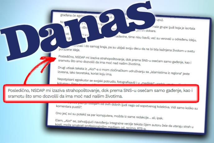 Naravno, znamo da odgovora na pitanje neće biti, i da niko od njih neće reagovati. Znamo i zašto: Danas, čiji je kolumnista napred pomenuti Simjanović, „njihov“ je. (Simjanović, uzgred pominjemo, saradnik je i novog nedeljnika Radar)… A u njihovoj Srbiji ne postoji borba za ideje, nadmetanje političkih programa, principijelna kritika… već samo rovovi.