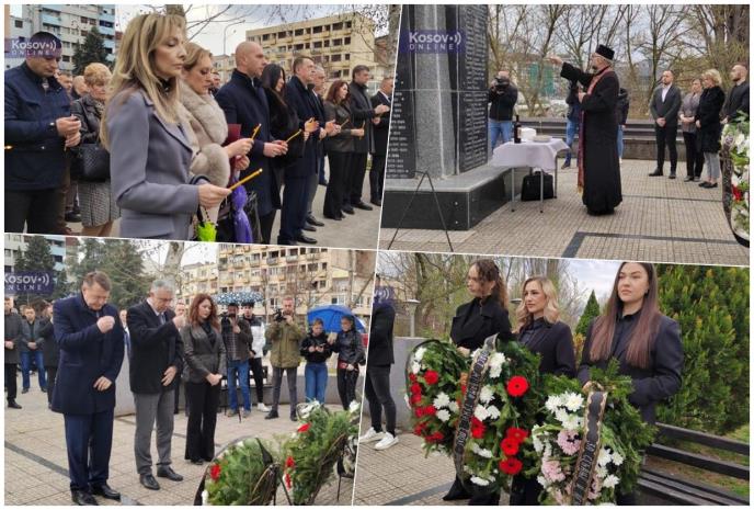 Povodom 20 godina od martovskog pogroma, u kome je ubijeno dvoje Srba u Severnoj Mitrovici, danas su u znak sećanja na nastradale predsednik Privremenog organa opštine Kosovska Mitrovica Ivan Zaporožac, predstavnici Srpske liste Zlatan Elek i Igor Simić, kao i pomoćnik direktora Kancelarije za Kosovo i Metohiju Igor Popović položili venac na mesta gde su ubijeni Borivoje Spasojević i Jana Tučev.