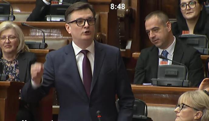 - Mi smo ponovo imali priliku da slušamo priču o fantomima i ja u tu priču nisam verovao, ali dokazi me demantuju, ja nisam u pravu. Prema tome, poštovani poslanici, ako želite da vidite fantoma, to je koleginica koja je govorila u ime ove grupacije. Ovo je tekst Infovranjske, 11. februar 2022. u kojem je Natalija Stojimenović kandidat za poslanika iz Vranja. Ovo je lista "Srbija protiv nasilja", ova godina, broj 31, Natalija Stojimenović, politikološkinja, Beograd, Palilula - rekao je Jovanov u Narodnoj skupštini i dodao: