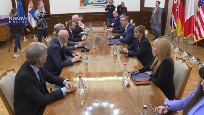 "DUG I OTVOREN RAZGOVOR S PREDSTAVNICIMA KVINTE I EU. NASTAVIĆE SE..." Predsednik Vučić se oglasio posle sastanka sa ambasadorima Foto: Kosovo online printscreen