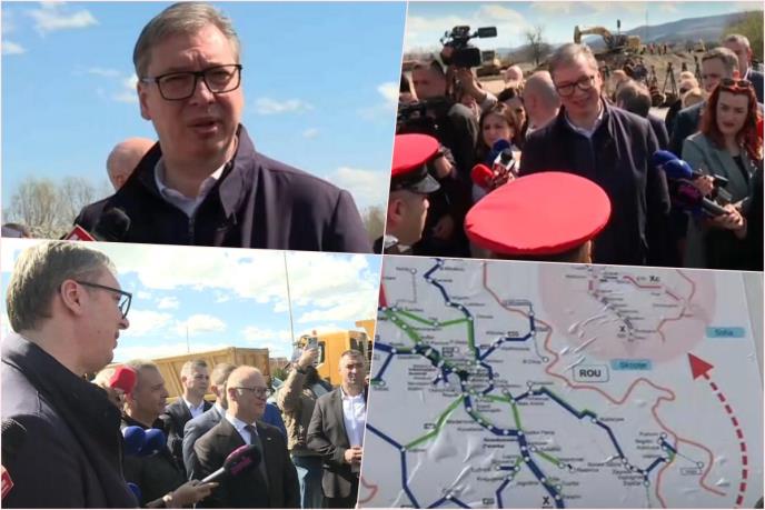 - Radovi na rekonstrukciji i modernizaciji železničke pruge Niš-Dimitrovgrad i obilaznici oko Niša koštaće 430 miliona evra, od čega je 108 miliona poklon EU, a trebalo bi da budu završeni do kraja 2027. godine... Sa obilaznicom oko Niša sve će izaći negde oko 430 miliona evra a na poklon od Evrope dobićemo oko 108 miliona evra, što je neverovatno, to je ogroman novac! I konačno se stvari kreću, ja sam uvek nezadovoljan, uvek mislim može brže, ali to su velike stvari koje menjaju izgled zemlje... Zamislite centar Beograd - centar Niš 2 sata i 10 minuta!, rekao je predsednik na početku obilaska.