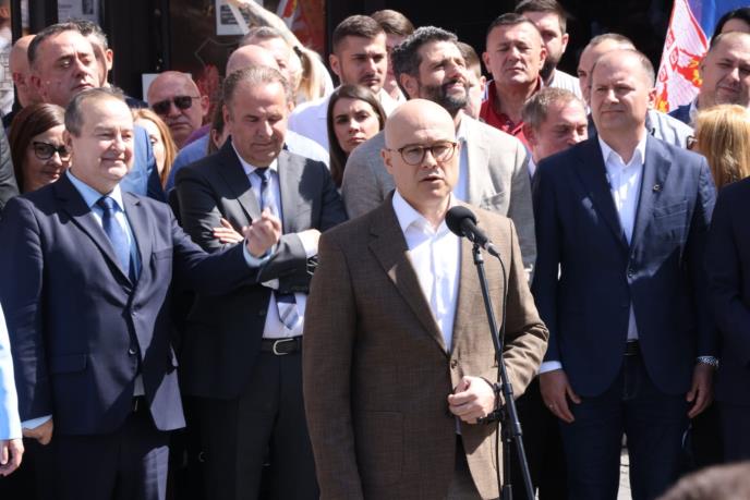 Predsednik SNS Miloš Vučević obratio se danas okupljenima ispred Gradske izborne komisije u Beogradu, gde je ta stranka, zajedno sa koalicionim partnerima, predala listu "Aleksandar Vučić - Beograd sutra" za izbore 2. juna.