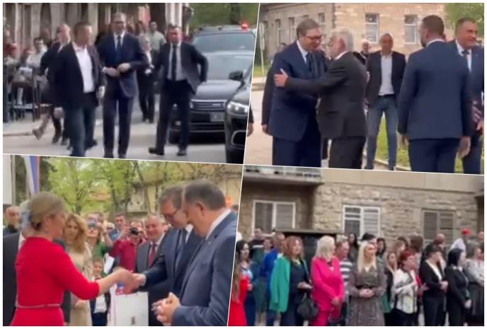 PREDSEDNIK VUČIĆ I DODIK U BILEĆI: Dočekani aplauzom! Srbija će pomoći sa 500.000 evra! (VIDEO)