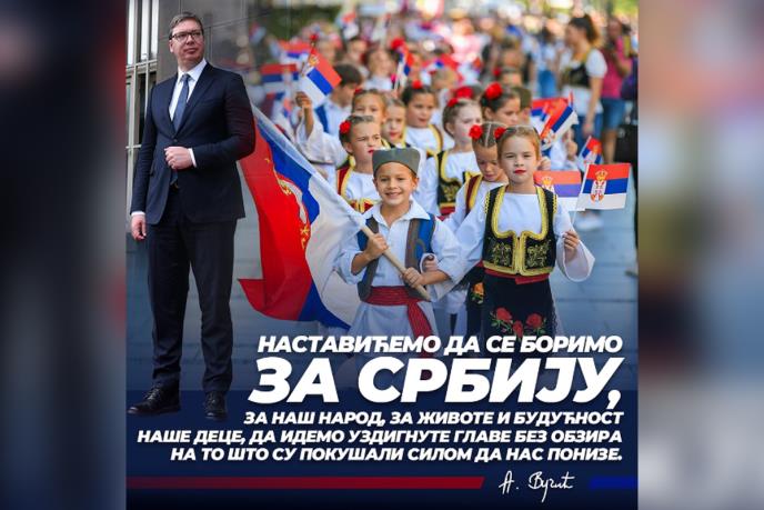 Vučić je na ličnom Instagramu objavio fotografiju dece u nošnjama koja ponosno nose trobojke pa napisao: