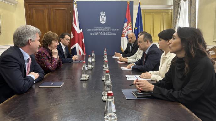 Ministar spoljnih poslova Srbije Ivica Dačić primio je danas Ketrin Ešton, nekadašnju visoku predstavnicu Evropske unije za spoljnu politiku i bezbednost.