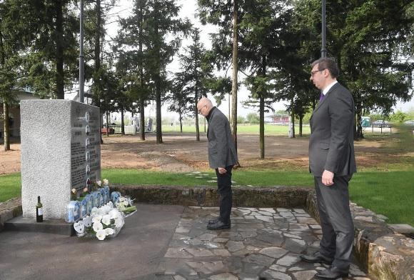 Premijer Srbije Miloš Vučević položio je cveće u spomen-parku u Malom Orašju na mestu ubistva Nemanje Stevanovića, Lazara Milovanovića, Marka Mitrovića, Aleksandra Milovanovića, Nikole Milića i Petra Mitrovića.