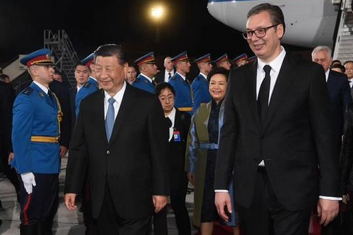 U Beograd je stigla kineska delegacija koja broji oko 400 članova. Predsednika Kine dočekali su srpski lovci MiG-29 koji su pratili njegov avion od ulaska u naš vazdušni prostor, a na beogradskom aerodromu je u njegovu čast postrojena garda Vojske Srbije.
