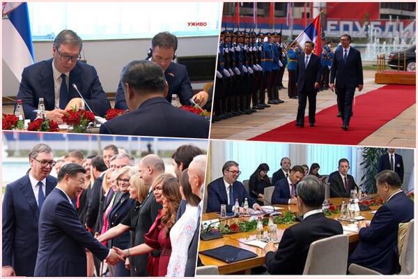 - Poštovani predsedniče Si, uvaženi prijatelju, dobro nam došli u Srbiju! Ovom posetom učinili ste ogromnu čast našoj zemlji i narodu, koji iskreno voli Kinu i ceni prijateljstvo Vaše velike zemlje. Vizija sveta za koju se zalažete, dala je inspiraciju i snagu i našoj maloj zemlji koja danas hrabro i ponosno korača putem napretka i uspeha. Želimo da iskrenim gostoprimstvom uzvratimo makar malim delom za svu podršku koju nesebično pružate Srbiji. Živelo čelično prijateljstvo Srbije i Kine, koje se kalilo u teškim vremenima i koje ćemo nastaviti da čuvamo kroz uzajamno poštovanje, razumevanje i čvrstu podršku", kazao je predsednik koji je zajedno sa Sijem pozdravio na hiljade okupljenih građana.
