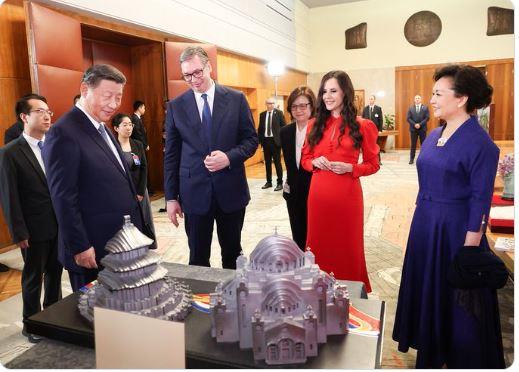 Predsednik Si je predsedniku Vučiću poklonio skulpture Hrama neba u Pekingu i Hrama Svetog Save naporavljene od čelika.