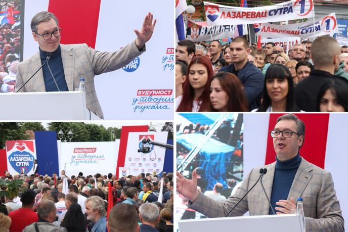 Izborna lista "Aleksandar Vučić - Beograd sutra" održava miting u pešačkoj zoni u Lazarevcu, gde se prisutnima obratio i predsednik Srbije Aleksandar Vučić.