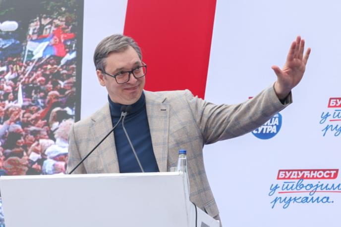 "Oni ne znaju u kakvom su problemu zbog angažmana Srbije, jedna mala Srbija boriće se do poslednjeg trenutka za svoj obraz, za svoju čast, za svoje ime, za svoje prezime. E to je Srbija danas. Srbija koja ima svoje ime, Srbija koja čuva svoj ponos, svoje dostojanstvo, Srbija koja sme da se bori za sebe, ali koja sme da se bori za svoje građane", poručio je predsednik Vučić i dodao: