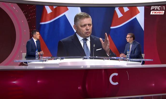 Predsednik Srbije Aleksandar Vučić gostuje u emisiji "Četvrtkom u 9". Vučić je u razgovoru za RTS prokomentarisao pokušaj atentata na slovačkog premijera Roberta Fica.