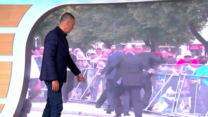 Zatim je stao pored zid-ekrana i analizirao dramatične trenutke ranjavanja slovačkog premijera.