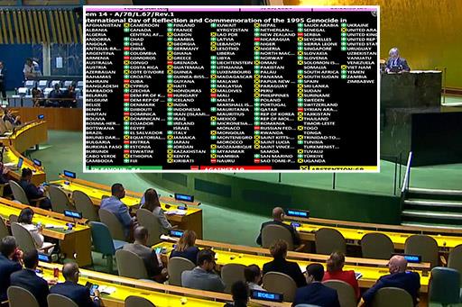 Sramna rezolucija o Srebrenici usvojena je danas na sednici Generalne sednice Ujedinjenih nacija sa 84 glasa za, 19 glasova protiv, dok je 68 zemalja bilo uzdržano, glasova protiv i uzdržanih ukupno je bilo 87.