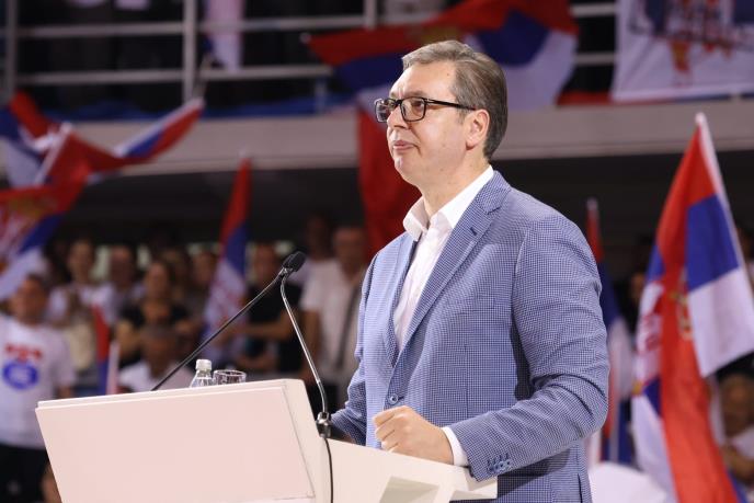 NIŠ - Aleksandar Vučić ispraćen je ogromnim ovacijama kada je izlazio na binu na skupu izborne liste "Aleksandar Vučić - Niš sutra" u Sportskoj hali "Čair".