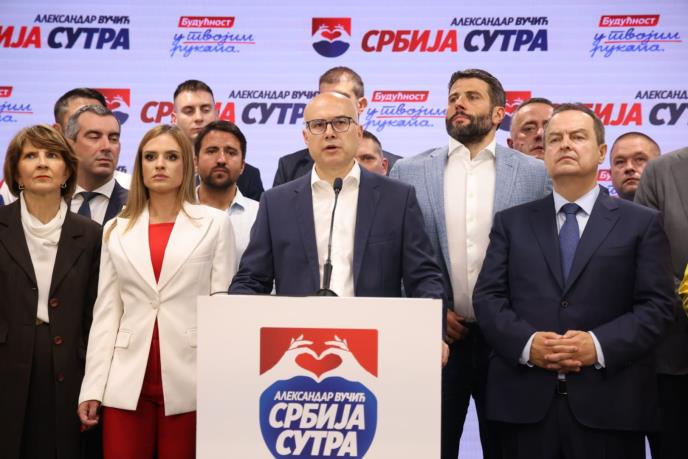 Predsednik Aleksandar Vučić obratio se javnosti večeras iz štaba SNS, gde je saopštio da je lista "Srbija sutra" ostvarila ubedljivu pobedu. Nakon njega medijima su se obratili i predsednik SNS Miloš Vučević, predsednik SPS Ivica Dačić i kandidat za gradonačelnika Aleksandar Šapić.