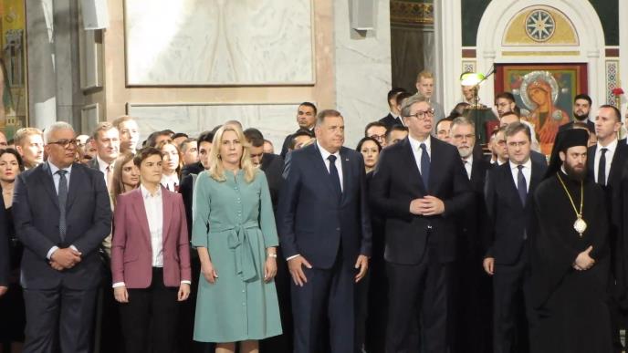 Predsednik Republike Srbije Aleksandar Vučić prisustvovao je danas, povodom prvog svesrpskog sabora "Jedan narod, jedan sabor - Srbija i Srpska" molebanu za Republiku Srbiju i Republiku Srpsku u Hramu Svetog Save sa predsednikom Republike Srpske Miloradom Dodikom, zvaničnicima najviših instutucija Republike Srbije i Republike Srpske i predstavnicima Srba iz regiona.
