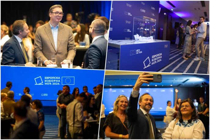 EVROPSKA IZBORNA NOĆ U BEOGRADU: Došao i predsednik Vučić, dočekao ga Žiofre