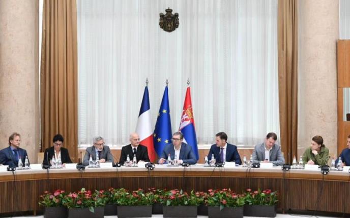 Predsednik Republike Srbije Aleksandar Vučić sastao se u Palati Srbija sa predstavnicima Udruženja francuskih privrednika MEDEF.