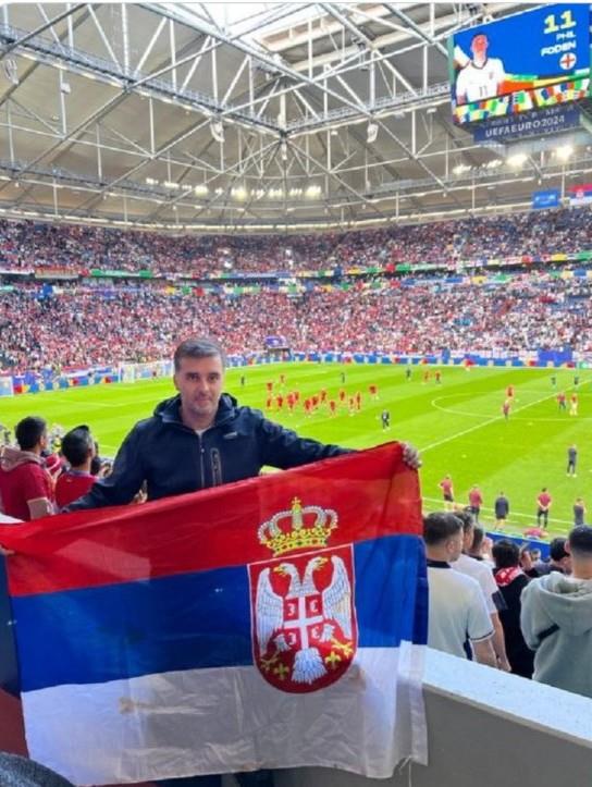Evropsko prvenstvo u fudbalu sinoć je pratio i to uživo sa stadiona u Gelzenkirhenu i Savo Manojović, lider pokreta "Kreni-Promeni", što je izazvalo burne reakcije korisnika društvene mreže "Iks".