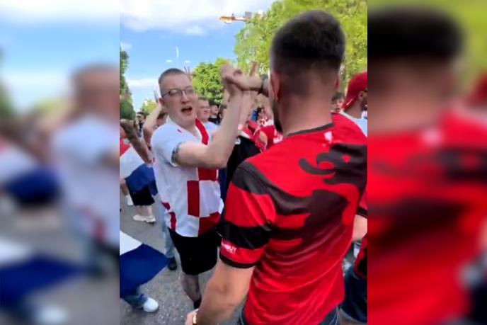 Nemačka policija je intervenisala i postavila se između hrvatskih i albanskih navijača juče, ali su se sklonili u stranu kada se situacija "primirila".