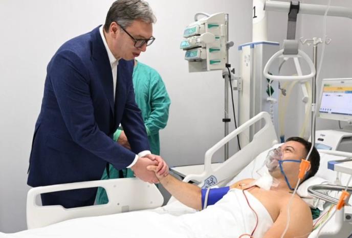 Predsednik Srbije Aleksandar Vučić obišao je u bolnici Miloša Jevremovića, pripadnika Žandarmerije koji je ranjen u današnjem terorističkom napadu ispred izraelske ambasade u Beogradu.