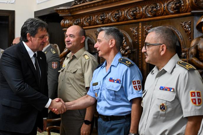 Ministar odbrane Bratislav Gašić upriličio je danas prijem za polaznike 13. klase Visokih studija bezbednosti i odbrane, u Domu Vojske Srbije u Beogradu.