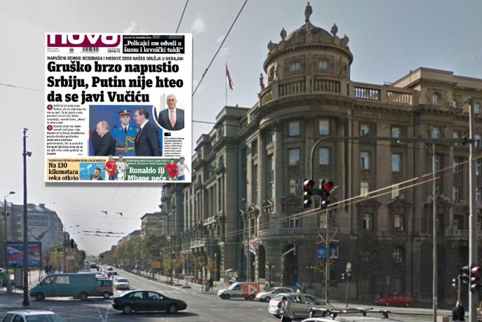 Povodom napisa u dnevnom listu „Nova“ u vezi sa posetom zamenika ministra inostranih poslova Ruske Federacija Aleksandra Gruška, Ministarstvo spoljnih poslova Srbije saopštilo je da celokupni članak, koji govori o toj temi, kao i glavni naslov u sutrašnjem broju tog lista, predstavlja lažnu vest i umišljajno sročenu dezinformaciju.