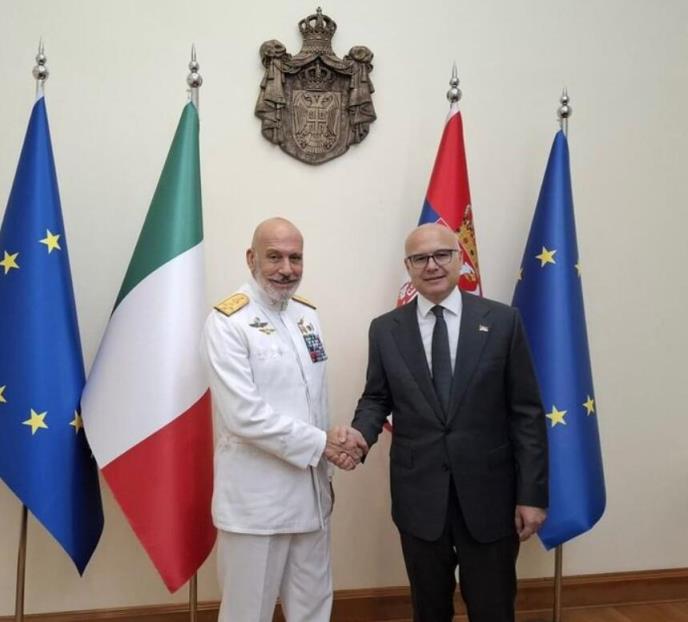 Admiral Kavo Dragone zahvalio je Vučeviću na današnjem susretu, saglasio se da su odnosi Srbije i Italije na visokom nivou i rekao da postoje mogućnosti za dalje unapređenje i proširenje vojne saradnje između dve zemlje.