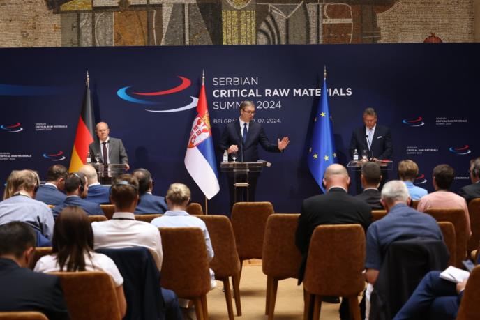 On je čestitatao predsedniku Vučiću i Srbiji na, kako je rekao, inicijativi koju predvode po pitanju sirovina, baterija i električnih vozila, a zahvalio je i nemačkom kancelaru Olafu Šolcu na podršci u toj oblasti i podsetio na veliki broj evropskih kompanija koje su učestvovale u potpisivanju sporazuma danas.
