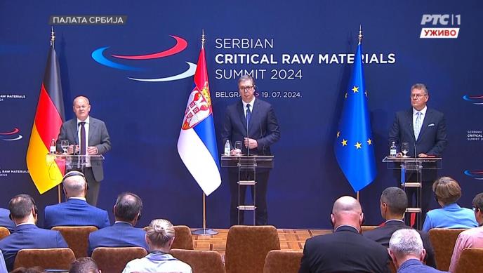 Danas je u Palati Srbija je održan Samit o kritičnim sirovinama na kome su učestvovali predsednik Srbije Aleksandar Vučić, kancelar Savezne Republike Nemačke Olaf Šolc i potpredsednik Evropske komisije i evropski komesar za međuinstitucionalne odnose i strateško predviđanje Maroš Šefčovič. Tom prilikom je potpisan Memorandum o razumevanju između EU i Srbije o strateškom partnerstvu o održivim sirovinama, lancima proizvodnje baterija i električnim vozilima.
